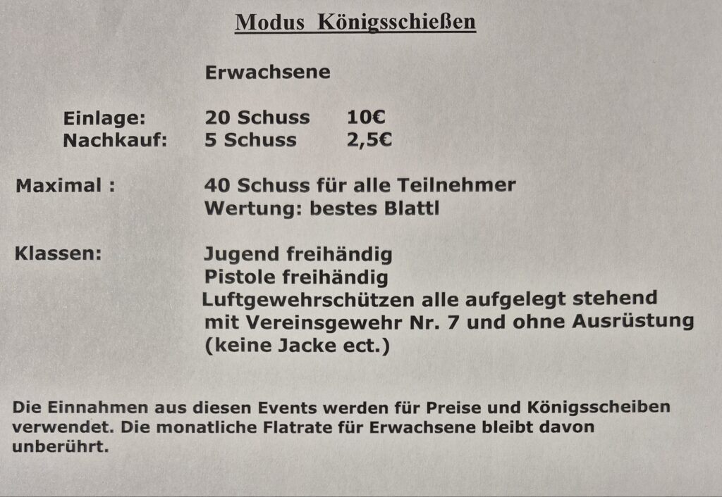 Weitere Schießtage 14./ 21./ 28.11./ letzte 05.12.2025