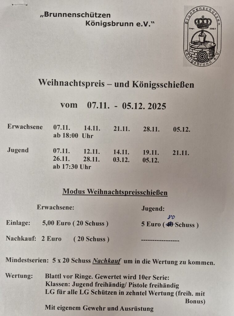 Rechtzeitig am 07.11.2025 starteten die Brunnenschützen zum traditionellem Weihnachts.- und Königsschießen.
