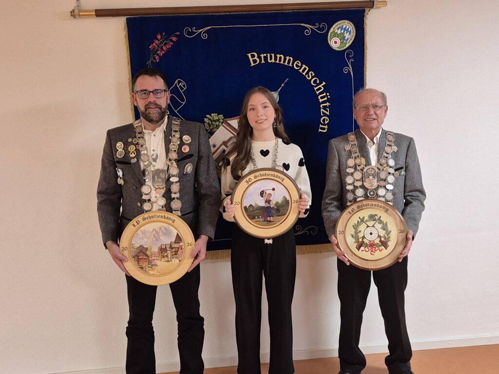 Nach alter Vereinstradition wurden im Rahmen der Jahresabschlussfeier der Brunnenschützen Königsbrunn die neuen Schützenkönige für das Jahr 2026 proklamiert.