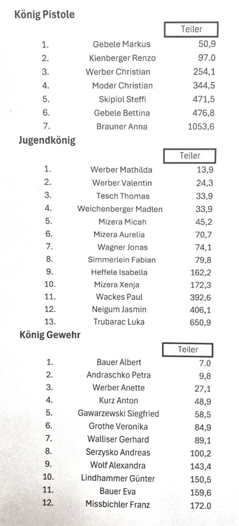 Nach alter Vereinstradition wurden im Rahmen der Jahresabschlussfeier am 13.12.25 der Brunnenschützen Königsbrunn die neuen Schützenkönige für das Jahr 2026 proklamiert.