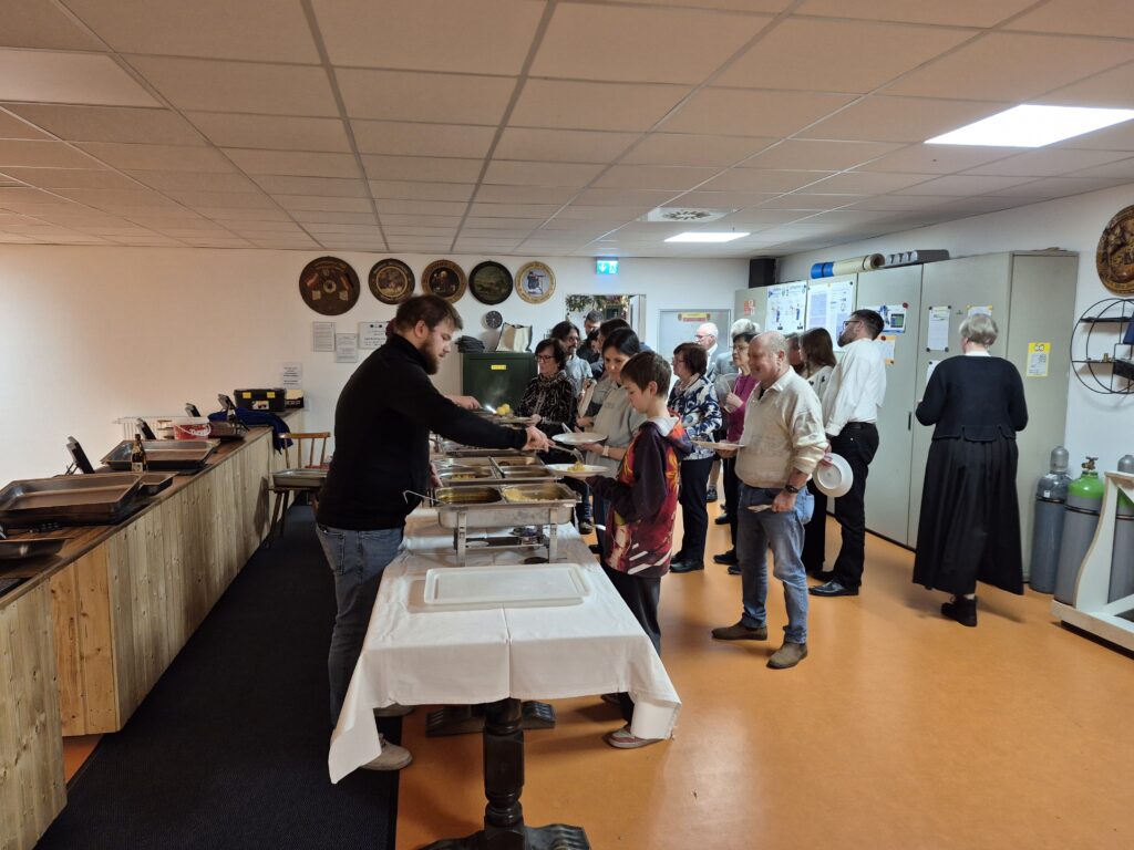 Essensausgabe vom „Team„ Partyservice Reich.