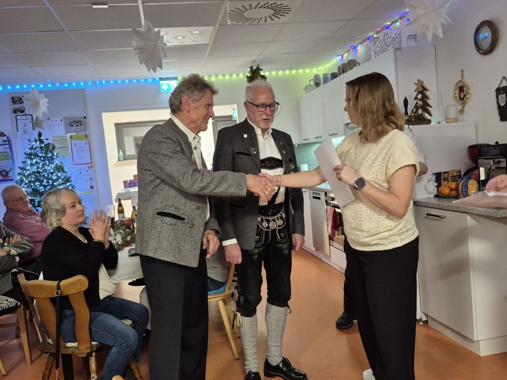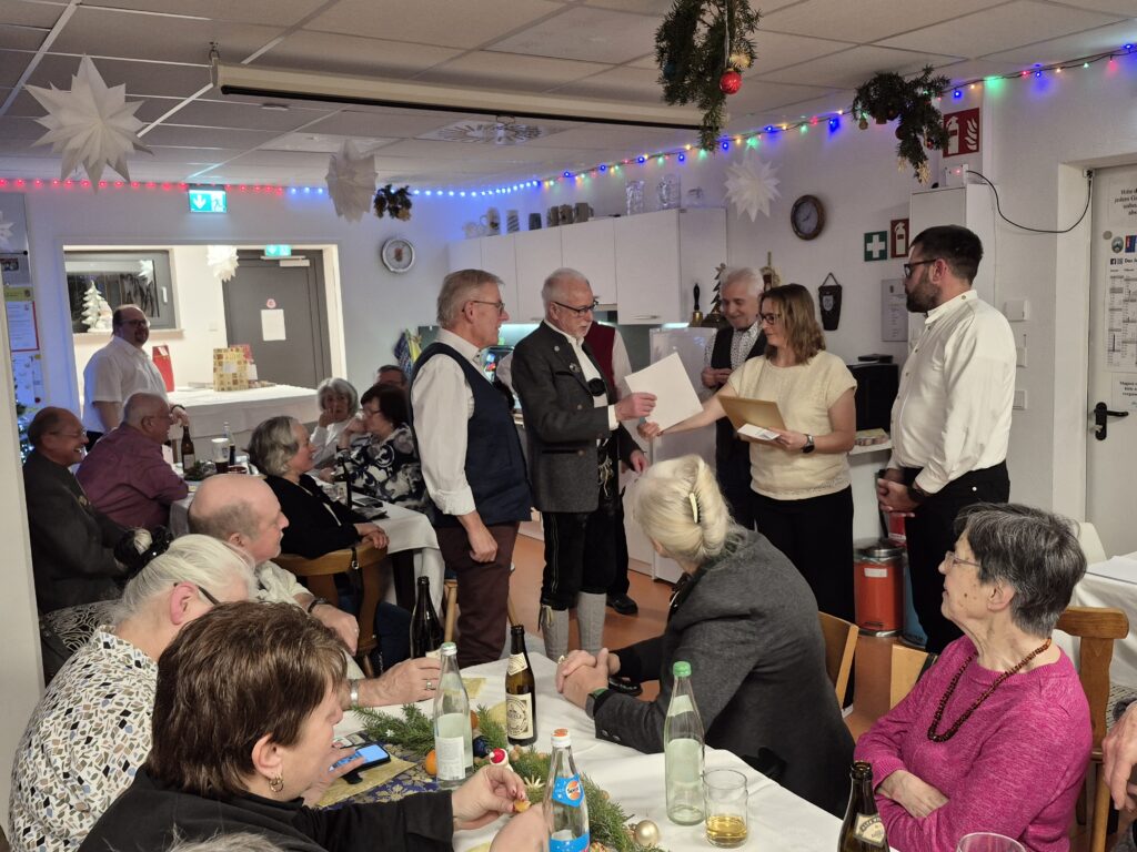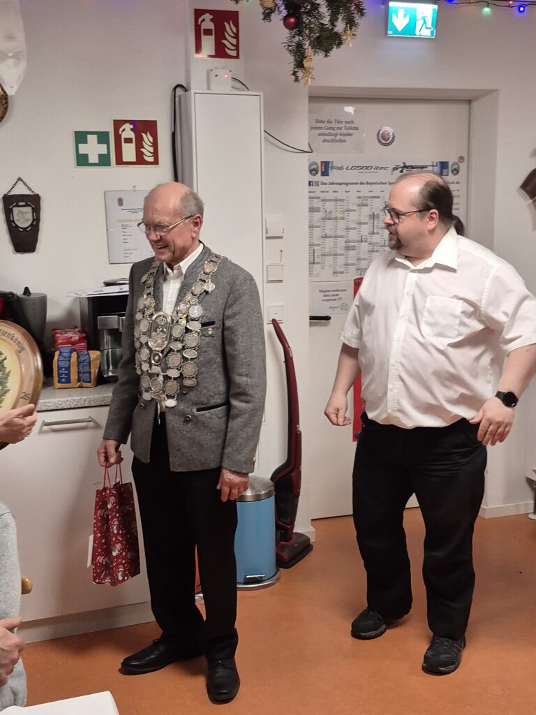 Günter bedankte sich bei allen Schützen für die tolle Leistungen 2025. Bei allen ausführenden Ämtern im Verein und für den Verein. Denjenigen Organisatoren und allen Mitwirkenden für den schönen Abend. Helmut und Sigi für die Restaurierung der Schützenscheiben. Auch wir sagen Danke Günter für Deine langjährige Tätigkeit als 1. Vorstand.