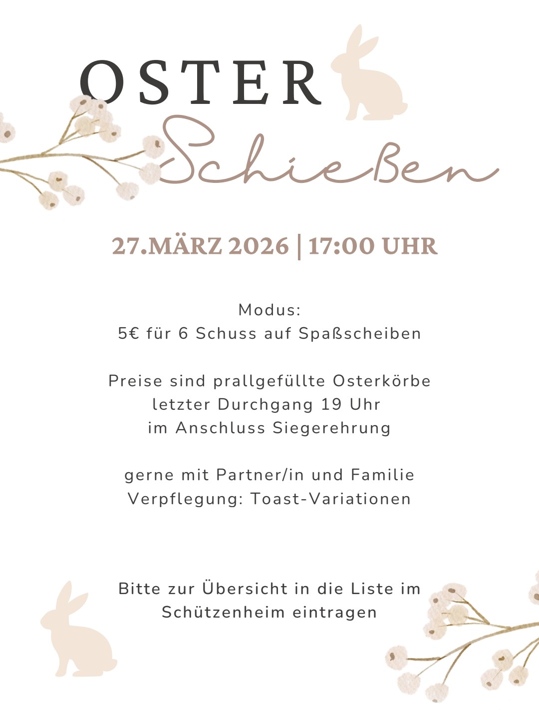 Internes Osterschießen 28. Februar 2026 Siegfried Gawarzewski Die Einladung erfolgte von unserer 1. Jugendleiterin Anna Brauner.