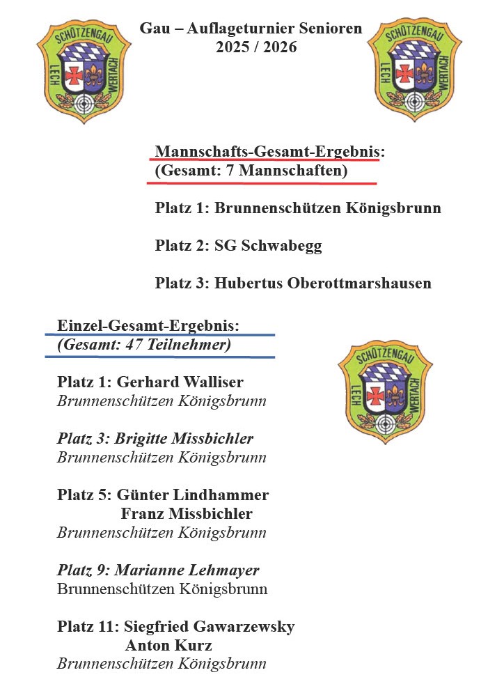 Insgesamt waren 8 Mannschaften am Start, 40 Schützen/innen, davon 11 aus Königsbrunn.